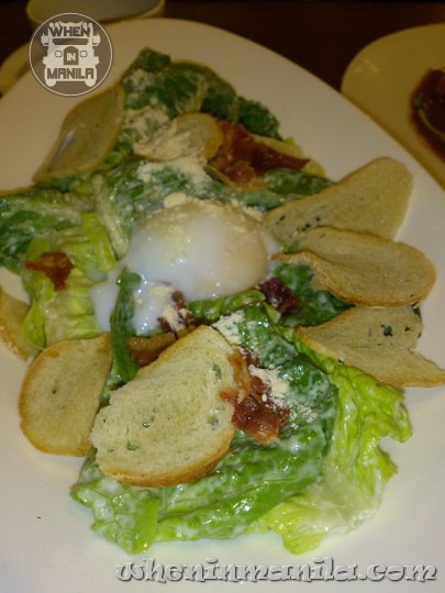 Organic Egg Caesar Salad – Romaine Hearts, Sous vide egg, bread chips, bacon rashers, parmesan