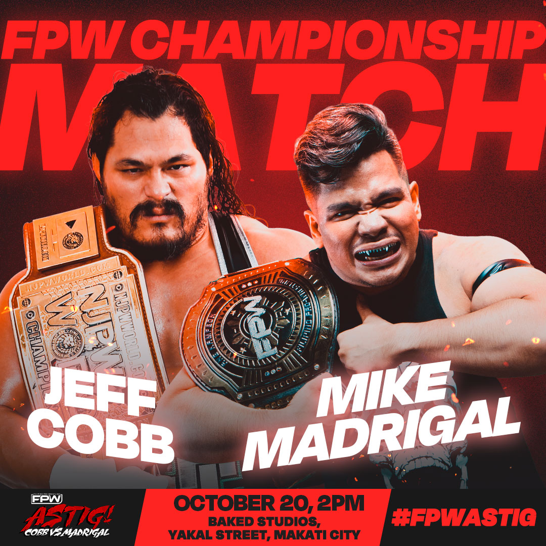 Makati, October 1, 2024 – In a blockbuster announcement last September, Red Ollero sealed the main event for FPW Astig on October 20, featuring international wrestling superstar Jeff Cobb taking on Mike Madrigal for the FPW championship!