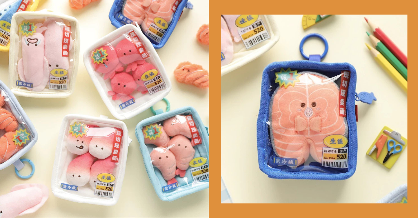 That is what makes these seafood tray plush pendants such a fun find. Inspired by sealed grocery packs of fresh seafood, they turn an ordinary errand aisle staple into a soft, playful accessory. Each piece feels familiar at first glance, then charming up close, especially once you notice the tiny faces stitched onto the fish, squid, and other sea creatures. It is novelty with a sense of humor, designed for people who like their accessories with personality.