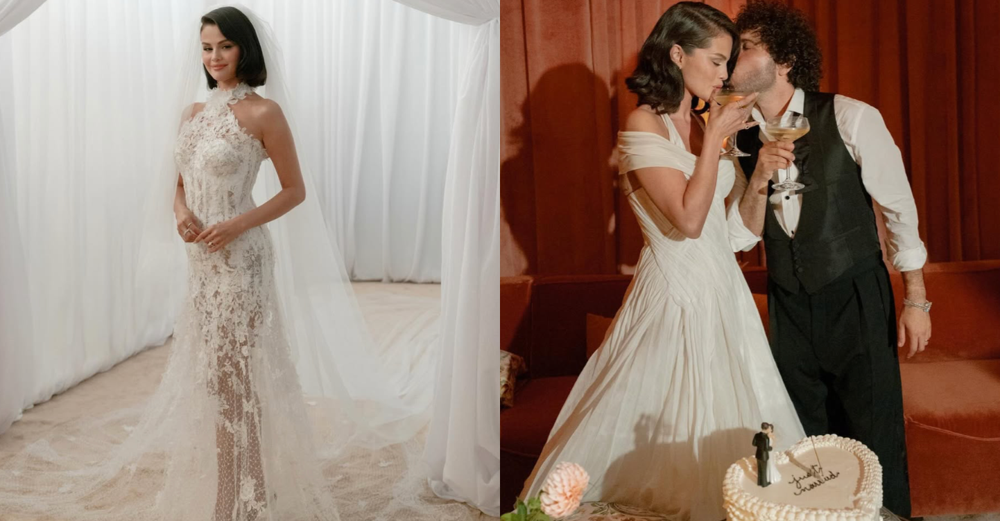 Selena shared the big news herself on Instagram, posting stunning snaps of their special day with the simple caption, “9.27.25.” She looked radiant in a halter-neck satin gown with delicate embroidered flowers along the neckline, carrying a bouquet of lilies of the valley. Benny kept it classic in a sleek black suit over a crisp white shirt.