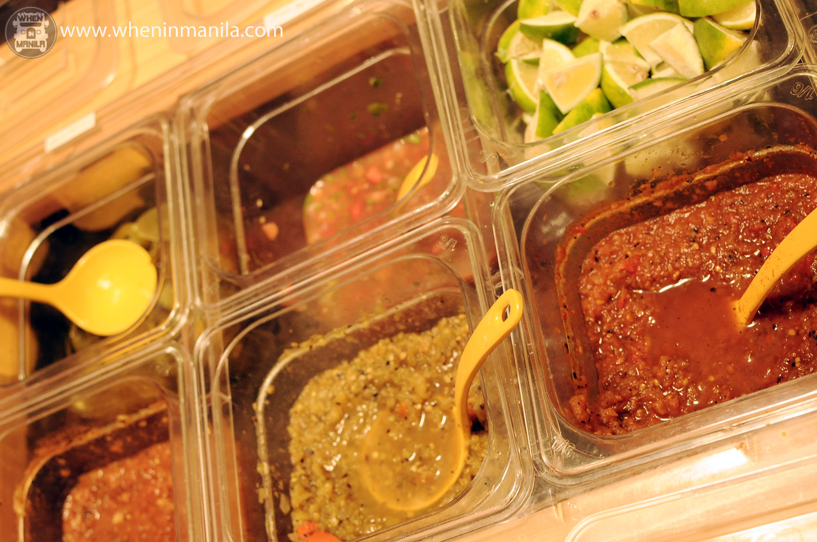 Seeing the simple menu just displayed behind the counter was encouraging, it meant I didn’t have to be a Mexican food expert to know what was good to order. As you can see in the picture below, ordering is as simple as 1, 2, 3 and 4. Since I knew I had to try as much as I could, we mixed everything on the list and came up with Steak Tacos, Pork Burritos, Chicken Burrito Bowl, and Nacho Grande. Just beside the counter, you see them making everything you ordered so you know you’ll get everything real quick. Everything else is self-service too, you grab your utensils, spices and just about everything else you’ll need from a station close to the counter.