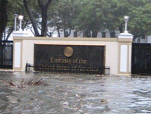 United States US Embassy flooded by Typhoon Pedring