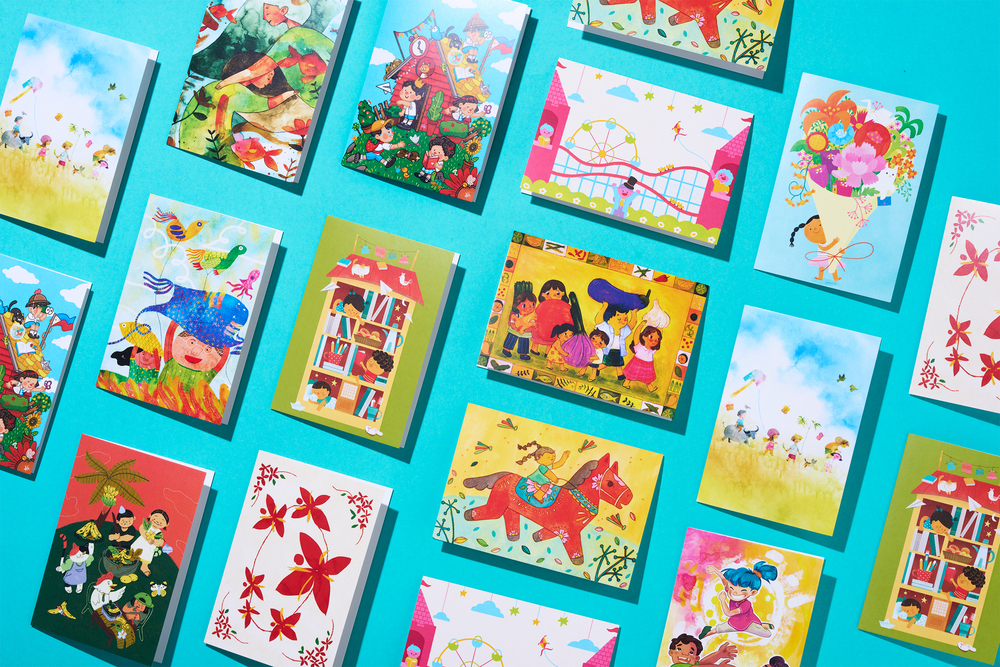 These illustrations bring color to cards and tote bags while carrying powerful stories of what every child deserves.