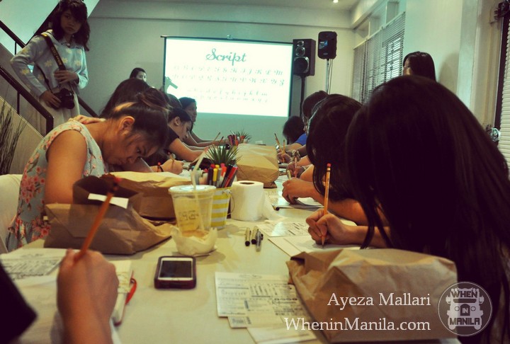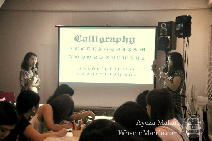 The workshop started with short introductions about the speakers and the craft of lettering. We saw the basic types and the art and technicalities behind lettering. After educating ourselves through the lessons, Abbey passed around her works for the students to see as samples. And then for the hands-on part of the workshop, the students practiced their lettering skills on a piece of intermediate pad paper.