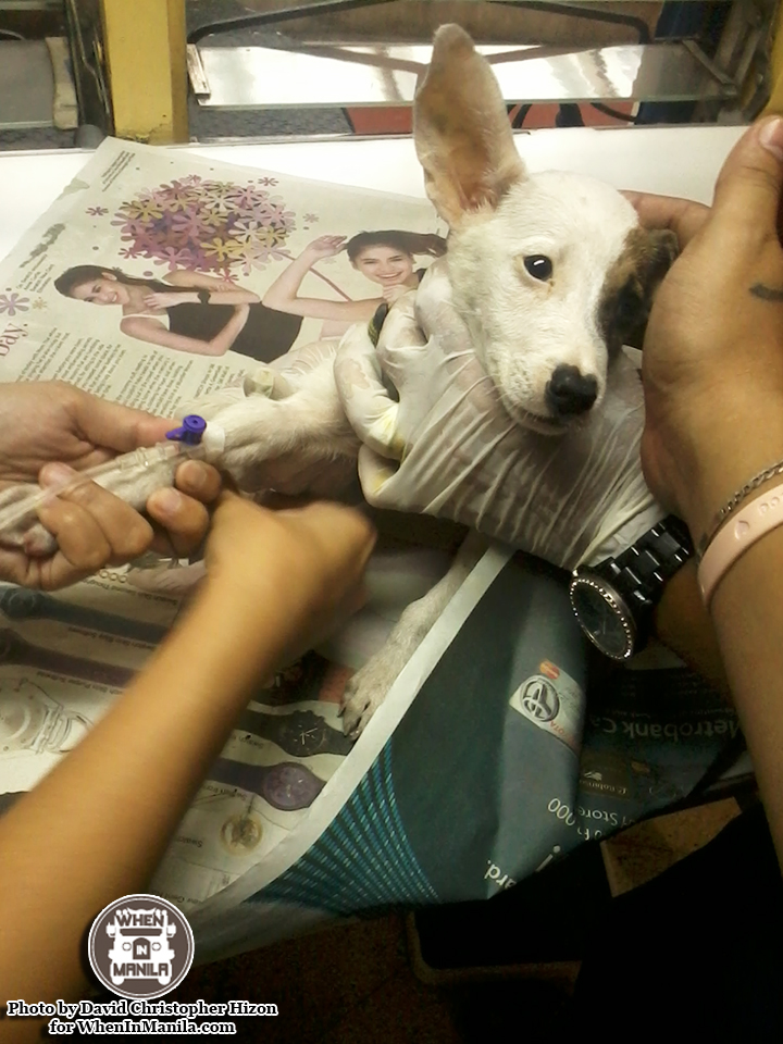 Bluetooth, as we came to call him, was a tiny, dirty, scared little puppy that we spotted wandering around the streets near our house in Cubao. He was being chased by a little girl who thought it was funny to watch him run and hide under cars to get away from her. We watched the little puppy to see what would happen, wondering for a minute if he was owned by the girl. The girl left, however, leaving the little puppy just hiding under a car, scared of everything. David and I have really big hearts when it comes to animals, and we knew we could not just walk away without helping the puppy.