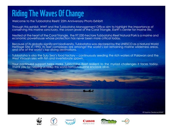 World Wide Fund for Nature Philippines (WWF-Philippines), together with Tubbataha Management Office (TMO) and supported by Canon Philippines, had asked for contributions of the best photos of the marine enclave. Hence, the launch of Riding the Waves of Change: The Tubbataha Reefs’ 25th Anniversary Photo Exhibit.